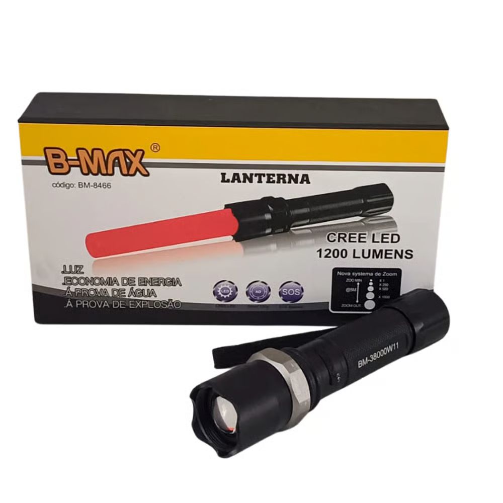 1 Lanterna Tática Swat, 2 Pilhas recarregáveis, 1 carregador da lanterna , suporte para pilhas AAA e um sinalizador.