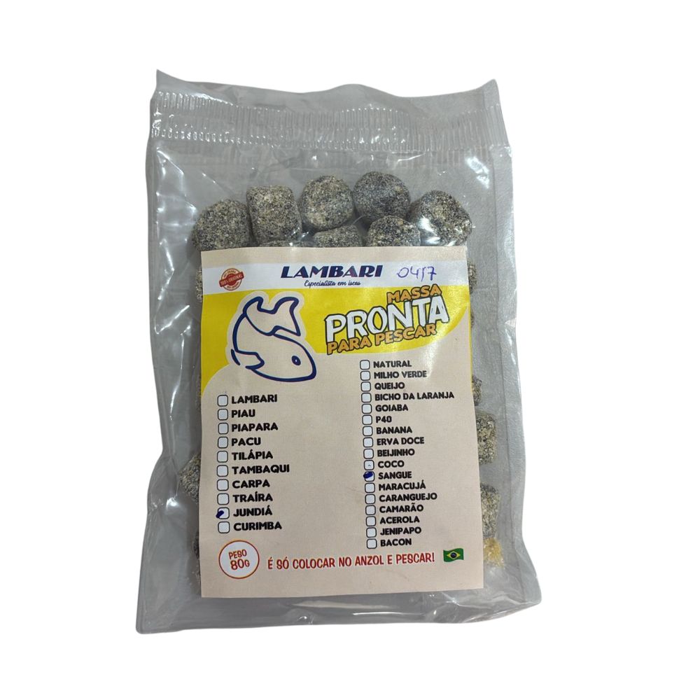 Massa pronta para pesca, excelente qualidade e eficiência comprovada para pesca em água doce como rios, lagoas e pesqueiros.